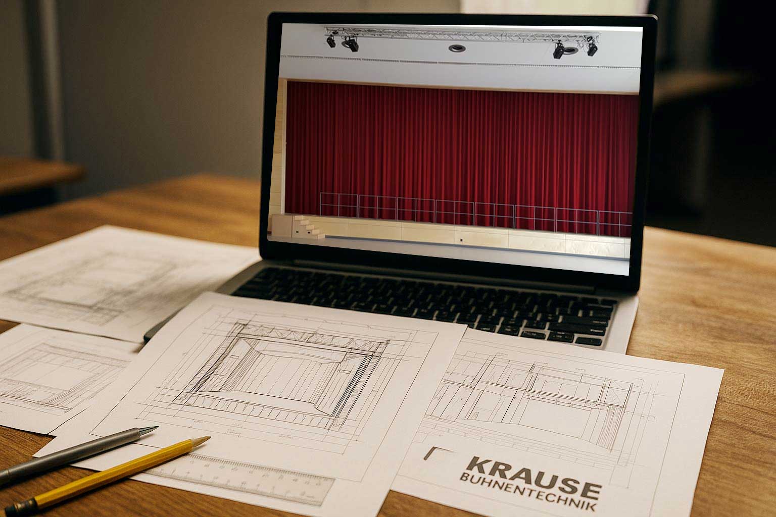 Krause Bühnentechnik plant und realisiert komplette Bühnenanlagen – von der Konstruktion über Vorhänge und Technik bis zur laufenden Wartung.
