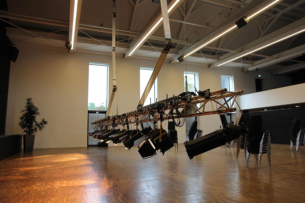 Punkt- oder Linienzüge, Traversenrahmen oder Gitter – skalierbar für Schule, Stadthalle, Theater.